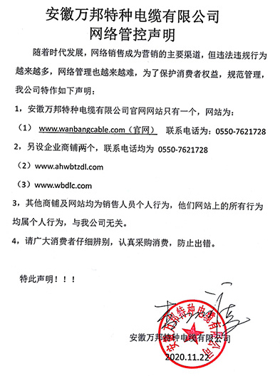 鄭重聲明:安徽萬邦特種電纜有限公司官方網站為:www_wanbangcable_com.wfjkt.com,除此之外無任何子網站或合作網站,其余均為假冒偽劣。電話:0550-7621728 13485756353 地 址:安徽省天長市滁州高新技術產業開發區經四路29號